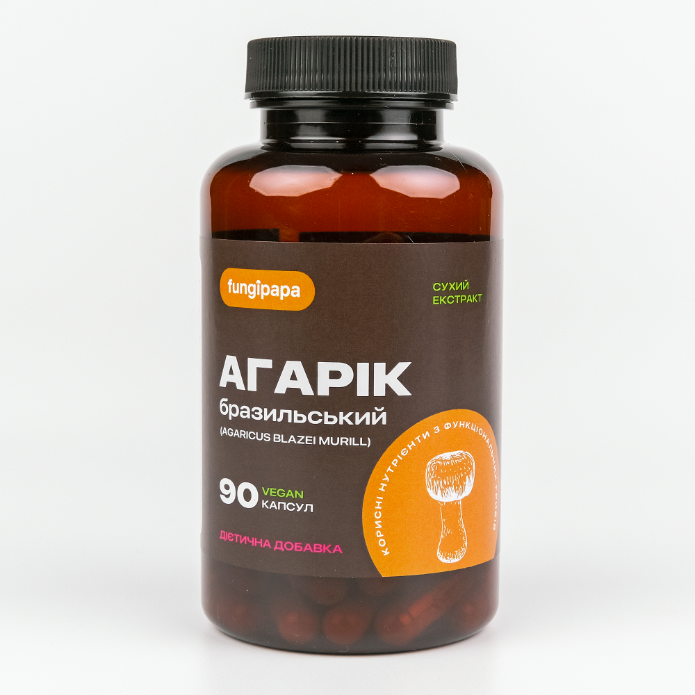 Раді представити новинку вашого улюбленого асортименту - капсули з екстрактом Агаріку бразильського (Agaricus blazei Murill) від Fungipapa. Тепер цей унікальний гриб, відомий своїми потужними оздоровчими властивостями, доступний у формі високоефективного екстракту в зручних рослинних капсулах.